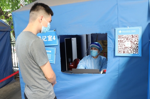 核酸檢測信息錄入中。兩江新區第一人民醫院供圖
