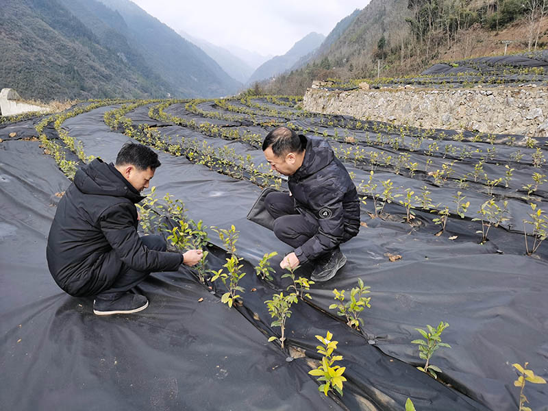 駐村第一書記查看茶樹苗生長情況。民生銀行重慶分行供圖