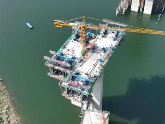 東溪河大橋主橋掛籃懸臂澆筑施工現場。中建路橋集團供圖