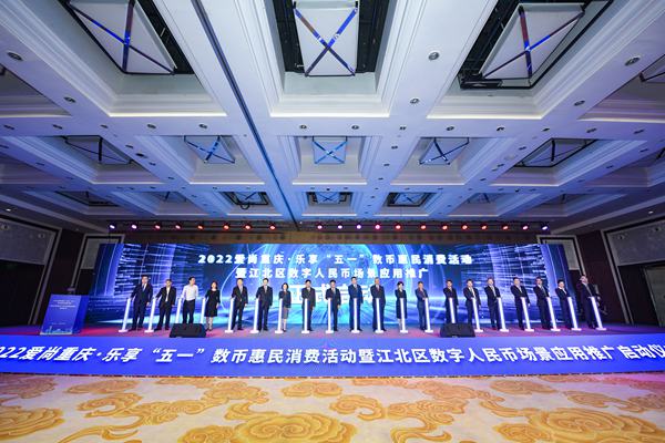 4月29日上午,2022愛尚重慶·樂享“五一” 數幣惠民消費活動暨江北區數字人民幣場景應用推廣啟動儀式在江北嘴國際時尚發布中心舉行。