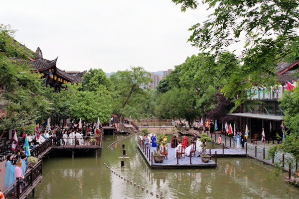 正則繡、璧山微雕、璧山吹打、璧山鼓韻等非遺文化也通過游戲藝術融入到了故事和劇本體驗環節之中。同時,游客進入景區必須更換為國潮服飾,并可更換“銀兩”作為貨幣購買璧山兔、來鳳魚、古法造紙、編藝、竹編、蜀繡等當地特色產品,形成“玩在故事里、吃在故事里、住在故事里、購在故事里”的全新型的“情景式二消”模式。