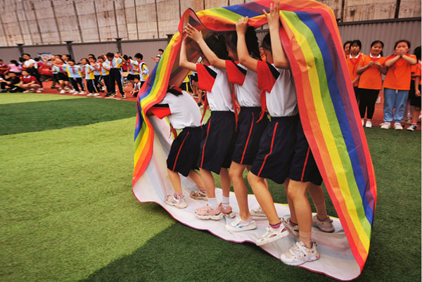 本次運動會為期一周,項目包含:袋鼠跳,迎面接力、車輪滾滾、拔河比賽。運動場上,運動員們團結拼搏、力爭上游;運動場下,拉拉隊員吶喊助威、躍躍欲試。重師附二小相關負責人表示學校堅持“以體促慧”,以運動錘煉精神,培養學生堅忍不拔的精神。(袁杰)