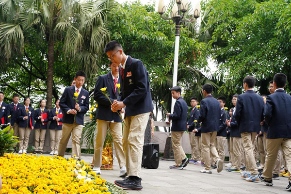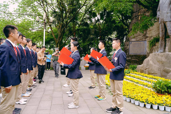 學生紛紛為烈士銅像敬獻鮮花。重慶八中宏帆中學供圖