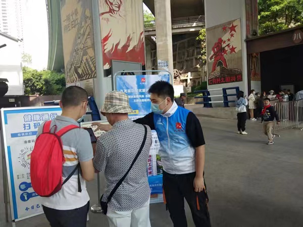 “請出示您的預約信息和健康碼,沒有預約的話,可以掃一下這個二維碼!苯,在華巖旅游風景區北門,九龍坡區文旅志愿者正耐心地幫助游客進行景區預約。每當有游客插隊或者亂扔垃圾等不文明行為發生時,王柯程都會及時上前勸阻!拔拿骱椭C的旅游環境,需要我們共同創造和維護,作為九龍坡的一份子,我希望盡我所能為創建全國文明城區貢獻一份力量!