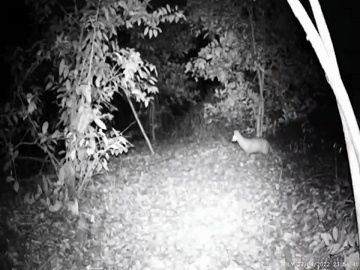 捕捉到的小靈貓夜間活動場景。紅外相機畫面