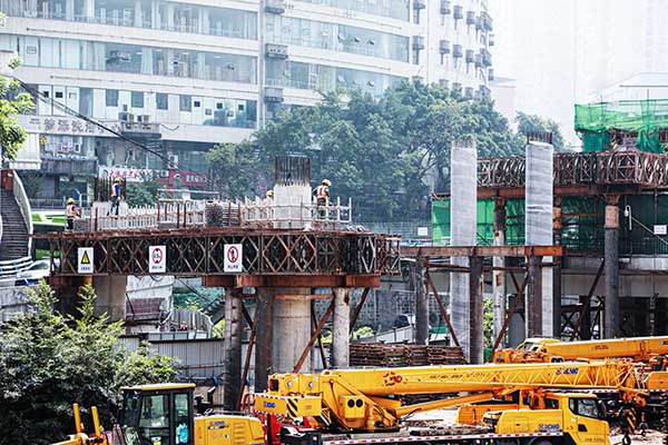 楊公橋C匝道現澆箱梁支架搭設。重慶城投建設公司供圖