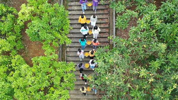 孩子們正在采摘枇杷。黃智宇攝