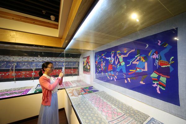 市民在參觀土家族織錦西蘭卡普。楊敏攝