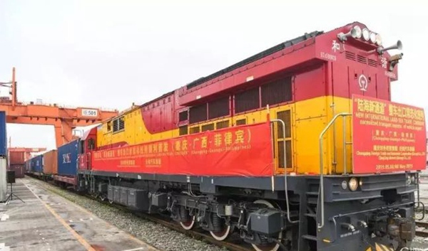 “陸海新通道”(果園港)班列開通。(資料圖)鄒樂攝