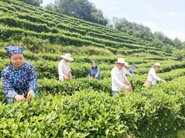 學員到荔枝街道方坪村茶園助農采茶。涪陵區委黨校供圖