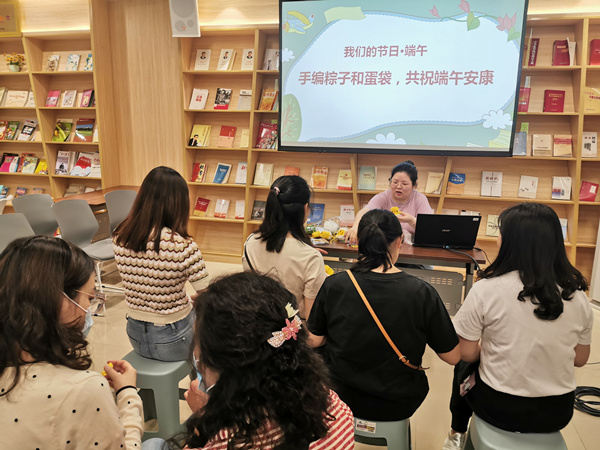 “編蛋袋”是端午習俗之一;顒又,社區志愿者向居民介紹了端午節的由來和有關習俗,并現場指導他們動手編織手工粽子掛件和蛋袋。拿到編織用的五彩線和鉤編工具后,在他們的巧手下,不一會,一個個別致可愛的蛋袋和清新小巧的粽子掛飾便呈現在大家面前。