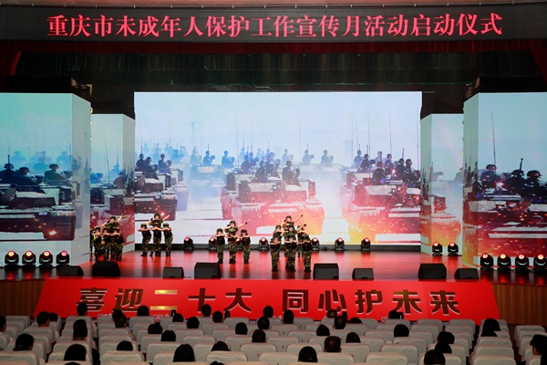 啟動儀式上,孩子們表演了《鐵軍夢》精彩節目,F場發布了重慶未成年人保護形象標識 LOGO,啟動了“云簽名”承諾活動;顒蝇F場,未成年人以及家庭保護、學校保護、社會保護、網絡保護、政府保護、網絡保護的工作代表集中倡議,號召全社會動員起來,參與未成年人保護。