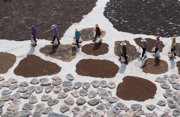 在院壩按品種分塊晾曬種子。冉孟軍 攝