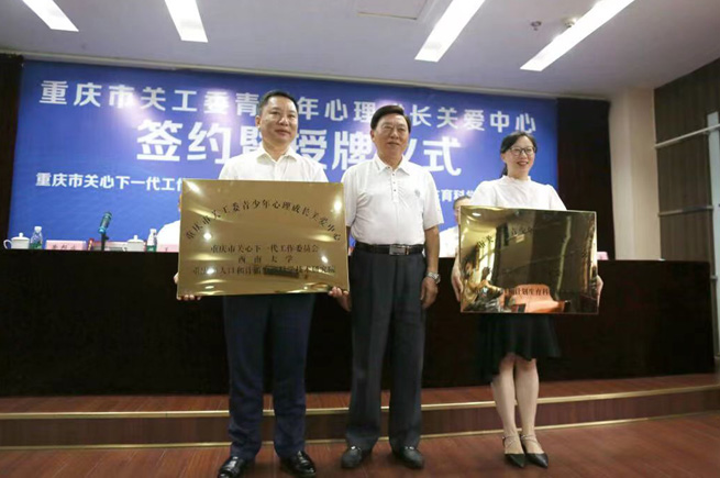 當天除了“重慶市關工委青少年心理成長關愛中心”成立外,現場還舉行了“西南大學應用心理學實習實踐基地”和“重慶市人口計生研究院婦女兒童心理健康中心”授牌儀式。
