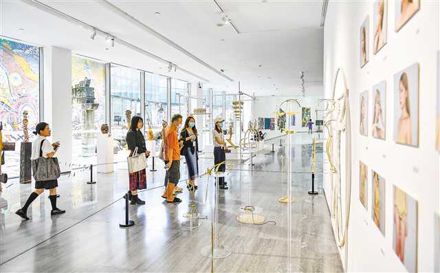 6月1日,四川美術學院美術館,“重慶藝術大市場·開放的六月——四川美術學院藝術游”2022畢業生作品展現場,觀眾正在觀展。