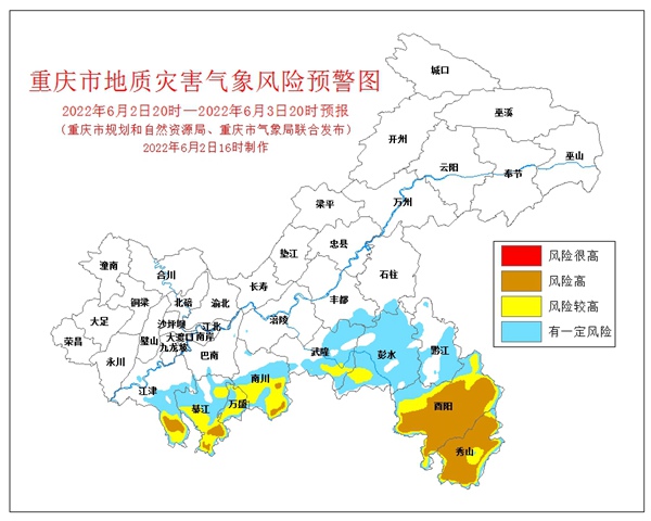 6月2日16時,重慶市規劃和自然資源局、重慶市氣象局聯合發布全市地質災害氣象風險預警。