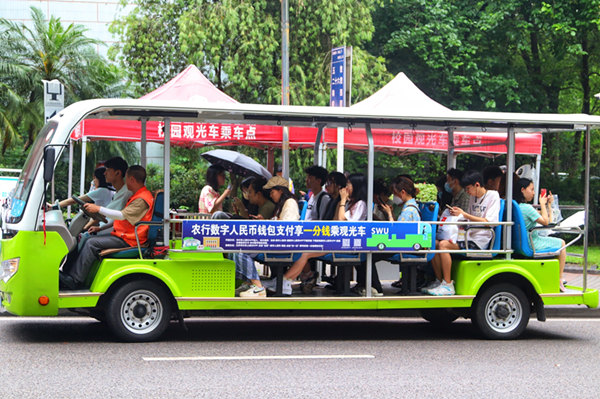 5月以來,西南大學師生乘坐校園觀光車,可使用數字人民幣且享受優惠活動。張睿攝
