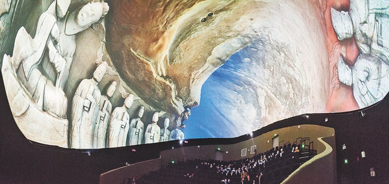 6月11日,大足石刻游客服務中心,市民正在觀看剛投用的大足石刻數字影院內的8K球幕電影《大足石刻》。據悉,該數字影院分為球幕影院(8K)和4K影院,各按302人同時觀影打造。球幕影院首次將杜比全景聲與8K高分辨率球幕相結合,創造出更好的包圍感、臨場感、環繞感。游客可在360度全景畫面和強烈的音效中,感受獨特的數字大足石刻的魅力。