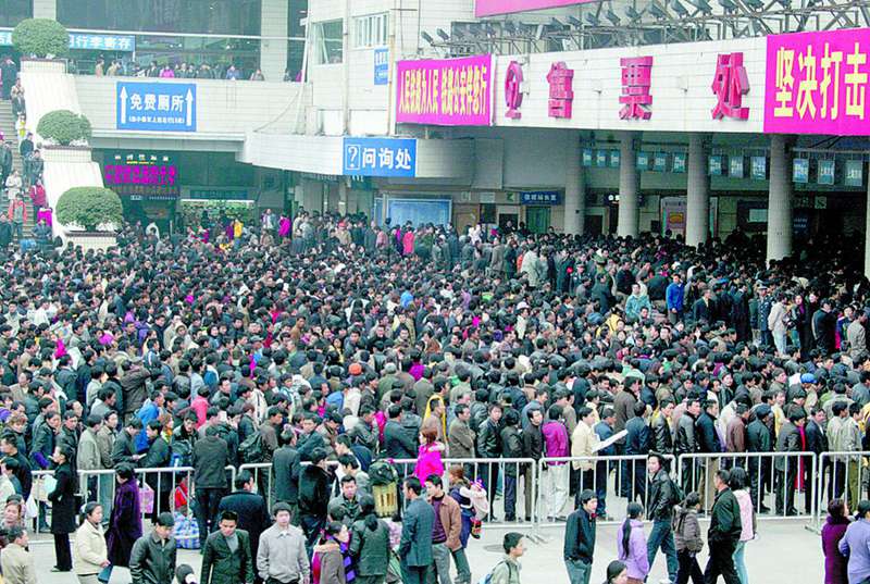 1993年2月,春運期間的重慶菜園壩火車站人頭攢動。 重慶日報供圖