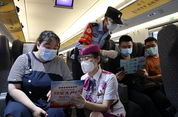 活動中,宣傳小分隊耐心細致地為大家答疑解惑、講解安全生產相關知識及乘坐列車時的疫情防控常識,廣泛宣傳《工會法》《安全生產法》《鐵路安全管理條例》等法律法規,營造“人人講安全、懂安全、守安全”的良好社會氛圍。
