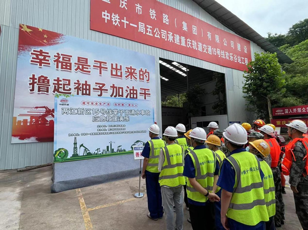 演練中,在大竹林危巖崩塌事件處置現場、天宮殿房屋倒塌事件處置現場、大竹林渡口汛期落水事件處置現場、15號線18標掌子面涌水事件處置現場,新區警方、消防、應急救援隊、街道、醫院、供電公司等相關部門展開聯合救援演練。