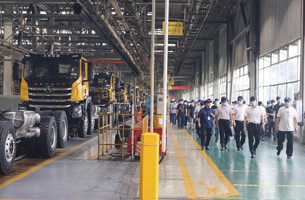 在上汽紅巖工作車間,一線崗位員工按照“兩單兩卡”要求,井井有條地開展工作。上汽紅巖相關負責人以車間工作為基礎,詳細講解了企業落實一線崗位安全生產責任的情況。兩江新區80余家規上工貿企業、限額以上商貿企業的代表,現場觀摩學習,深有感觸。