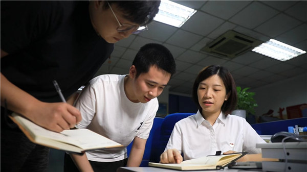 蔡爭真與團隊成員討論工作。曾英豪攝
