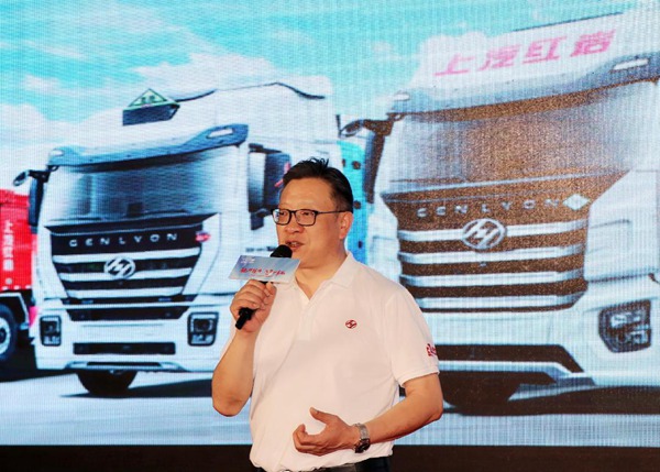 上汽紅巖汽車有限公司總經理樓建平在發布會上講話。上汽紅巖汽車有限公司供圖