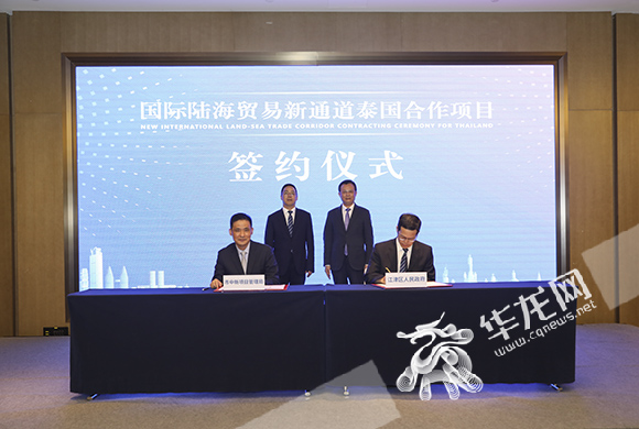 國際陸海貿易新通道泰國合作項目簽約儀式舉行。華龍網-新重慶客戶端 首席記者 李文科 攝