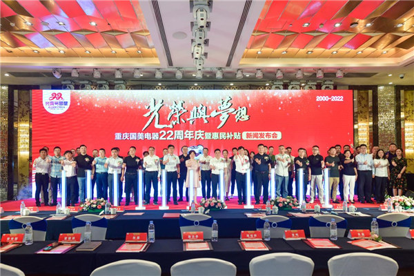 7月6日,重慶國美在重慶兩江假日酒店召開“重慶國美22周年慶暨惠民補貼”新聞發布會。