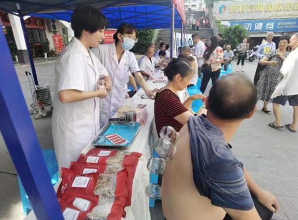 活動現場,吸引了大量市民參加。石柱縣中醫院黨委書記周海東表示希望通過開展中醫藥宣傳和義診活動,引導群眾認識、了解、喜愛中醫藥,倡導養成健康生活好習慣,營造全社會關心、支持和參與中醫藥傳承發展的良好社會氛圍。他表示醫院目前正全力開展三級中醫醫院創建工作,將緊緊圍繞“堅持中醫辦院方向,打造重慶市一流中醫綜合性醫院”發展目標,進一步增強使命感、責任感、緊迫感,努力為群眾提供更加優質高效的中醫藥服務。