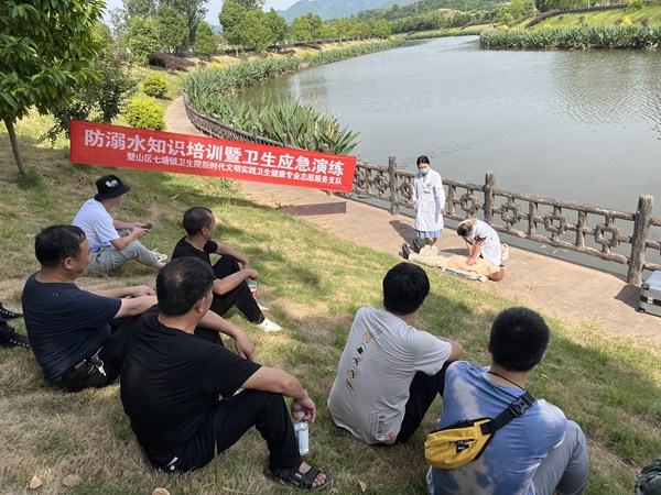為強化暑期安全防范意識,提升轄區群眾對防溺水知識的認識和溺水自救技能水平,同時強化醫務人員應對突發事件的快速反應能力和救援實戰技能,近日,七塘鎮衛生院在七塘鎮建設村楊家橋開展防溺水知識培訓暨衛生應急演練。醫務人員對如何正確穿著救生衣、溺水如何自救等知識進行詳細講解,并現場模擬落水、救援、心肺復蘇等衛生應急急救全過程。