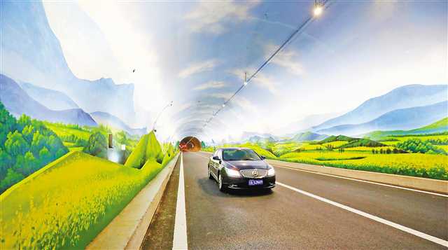 7月30日,城開高速城口縣雞鳴鄉至開州區譚家鎮段正式開通。圖為車輛從城開隧道3D裸眼彩繪段駛過。記者 羅斌 攝/視覺重慶