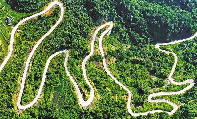 7月25日,無人機拍攝的酉陽車田鄉盤山公路。特約攝影 陳碧生/視覺重慶