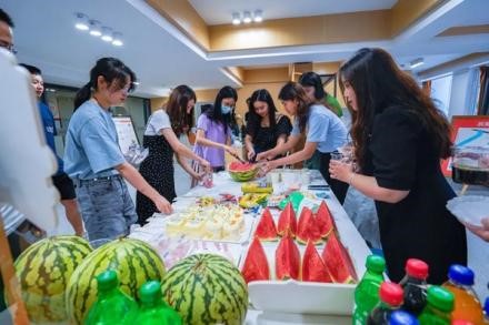 在活動主會場辰寓大竹林青年公寓,管家為租戶們組織了吃西瓜比賽、自制創意飲品、唱生日歌、吃蛋糕、玩游戲等一系列活動。