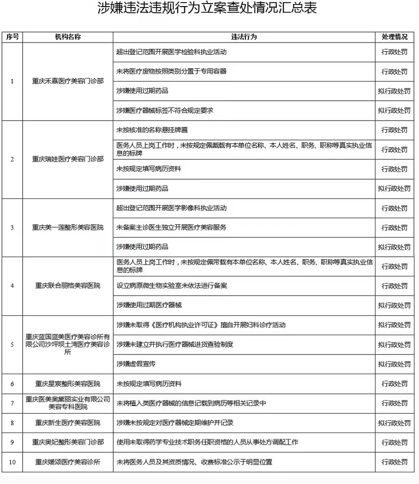 - “你點名 我監督”結果出爐 重慶10家醫美機構被立案查處