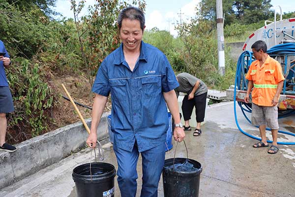 市水投集團渝水股份璧山村鎮公司八塘水廠廠長幫村民把水提到家門口。市水投集團?供圖