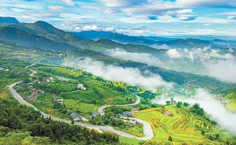 8月26日,萬盛經開區魚子崗村晨霧繚繞,水稻、梯田、盤山公路融為一體,宛如一幅美麗畫卷。近年來,萬盛經開區踐行綠水青山就是金山銀山理念,全面推進礦山生態修復和綜合整治,累計修復礦山3萬余畝;大力推進美麗鄉村和“四好農村路”建設,完成了從“礦區”到“景區”的綠色轉型。