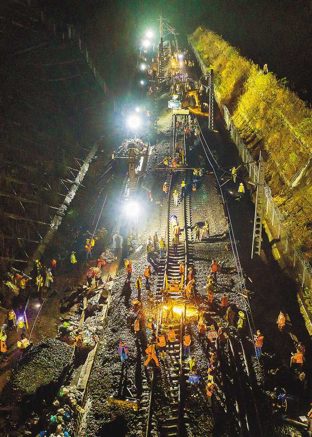 9月1日凌晨,重慶鐵路樞紐東環線磨心坡站,中鐵八局作業人員正在抓緊完成最后的施工。5時,“三線樞紐”磨心坡站開通運營,標志著東環正線主體工程接入襄渝線全部完成,為東環線與既有襄渝線、襄遂聯絡線正式“接軌”創造了條件。