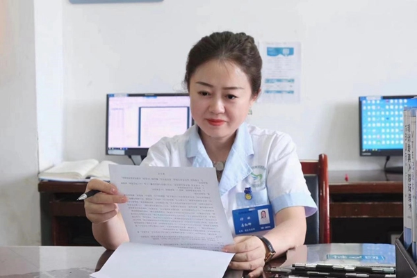 墊江縣人民醫院婦科主任馬紅柳在辦公室內查看患者病例。墊江縣人民醫院供圖