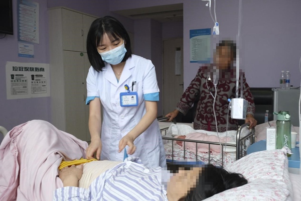 在婦科病房查看患者體征情況。墊江縣人民醫院供圖