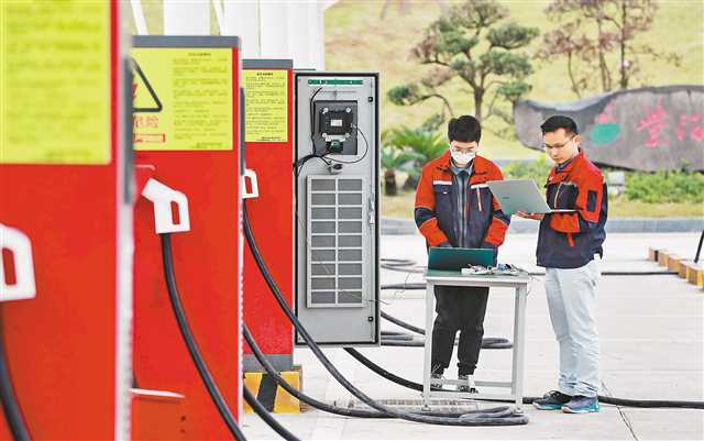 重慶高新院的科技人員在調試新型碳化硅半導體充電樁。(攝于二○二一年二月十八日)特約攝影 謝捷\視覺重慶