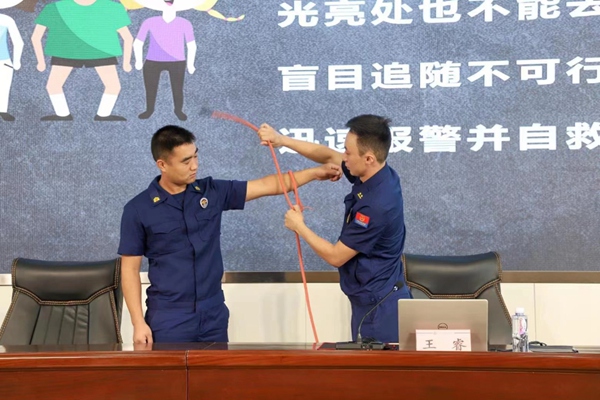 授課期間,消防宣傳員詳細講解了學校、家庭常見火災隱患及類型,面對面教授了如何查找整改身邊的火災隱患,隨后著重講解了在家中或學校發生火災時的自救逃生方法及如何正確報火警等消防知識。同時,通過播放如何正確撲救油鍋起火、如何處置酒精起火等視頻,把不易理解的專業知識同直觀可見的實際應用相結合,使消防科普變得通俗易懂。