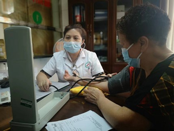 桂平為門診患者免費測量血壓。蔣永勁攝
