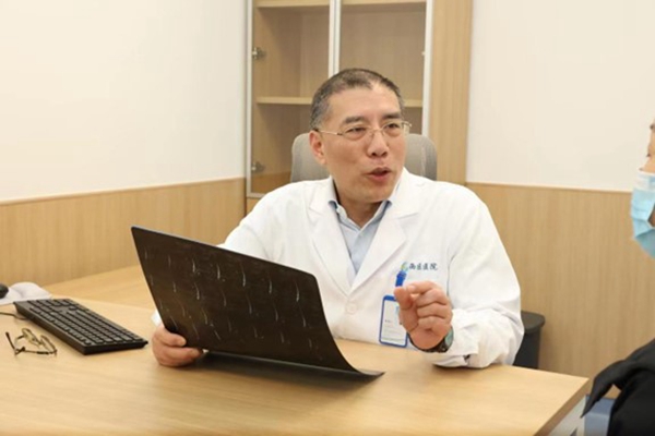 蔣曉江與醫生做病情交流。重慶西區醫院供圖