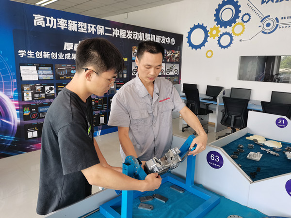 “越野摩托車在障礙地形優秀的機動能力,主要看發動機”,重慶工業職業技術學院“譚大慶(市級)技能大師工作室”受重慶立可工貿有限責任公司委托,致力于研發高性能的二沖程發動機。項目由工作室主持人譚大慶帶領教師舒鶇鵬、余宗寧、劉明東、陳一禎和學生舒杰、劉坤林等20余人,歷時8個月緊張研發,“終于取得最重要的一個階段突破”。