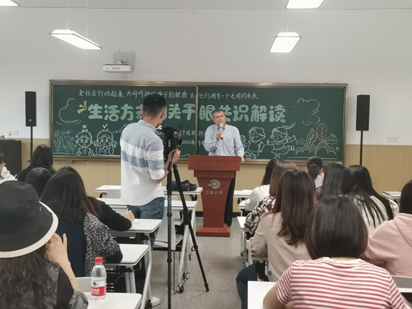 2022年9月是教育部第五個近視防控宣傳月,本次宣傳月的主題是“全社會行動起來,共同呵護好孩子的眼睛,讓他們擁有一個光明的未來”。近日,重慶華廈眼科醫院院長、眼表與角膜病專家謝漢平受邀來到江北區培新小學,為老師們帶來了“生活方式相關干眼共識解讀”,提高老師們對干眼癥及其預防方式的認識。