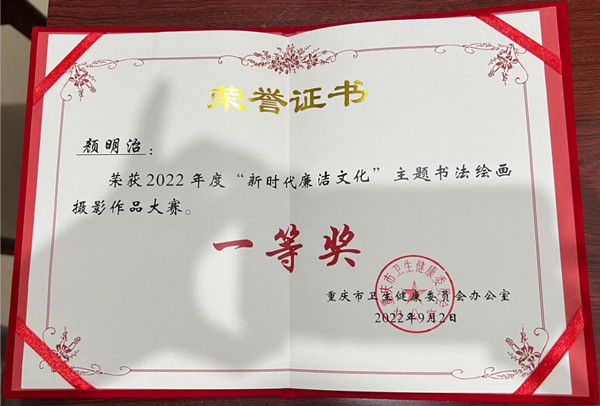 近日,重慶市衛生健康委員會開展了“新時代廉潔文化”主題書法繪畫攝影作品征集大賽。重慶迪邦皮膚病醫院院長顏明治的書法作品《春夜喜雨》獲一等獎。
