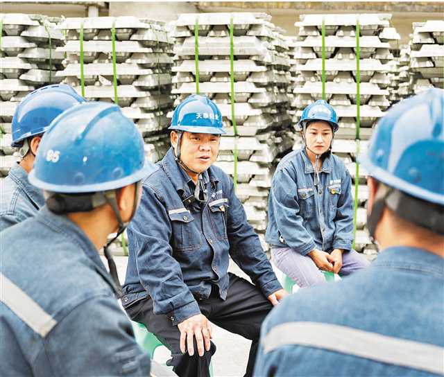 10月25日,黨的二十大代表、重慶天泰鋁業有限公司綜合車間主任王春全和公司干部員工一起交流學習黨的二十大報告心得。