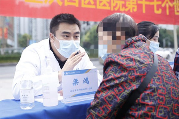 10月28日,在九龍坡區金科陽光小鎮廣場,重慶西區醫院神經內科主任楊珩、神經外科主任梁鴻、心臟血管疾病中心心血管內科專家鄧宜鸝等帶領醫療團隊,開展聯合義診。